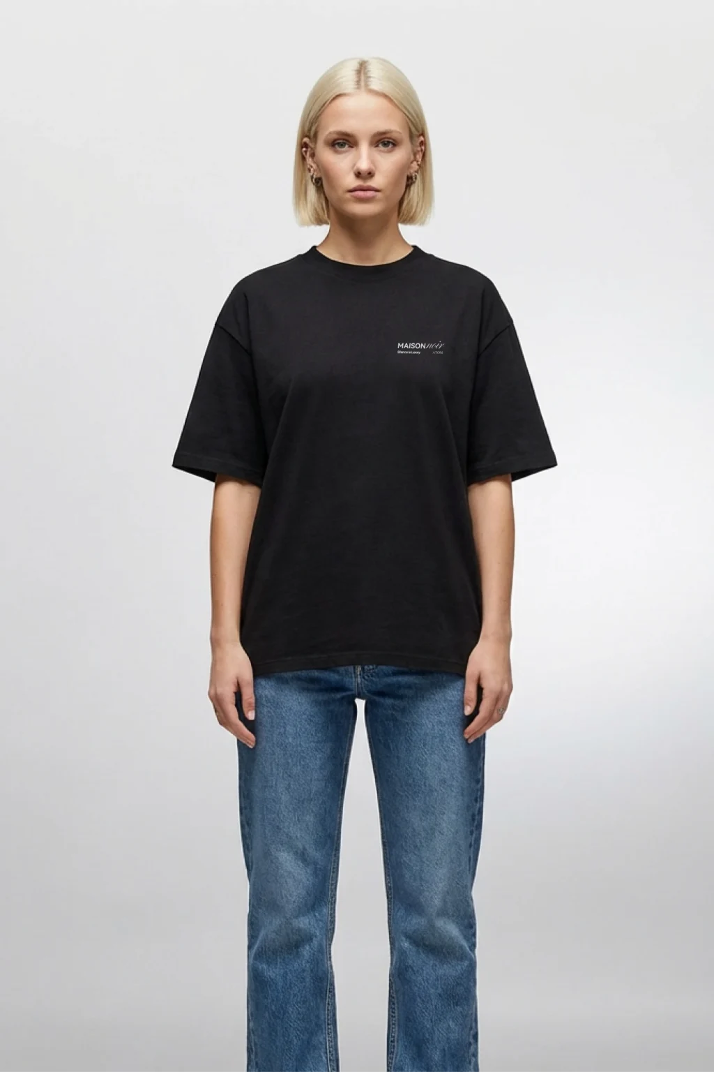 At the chest sits the MAISONNOIR mark, printed with precision in plastisol, subtle yet intentional. A small detail, but one that carries the identity of the piece.